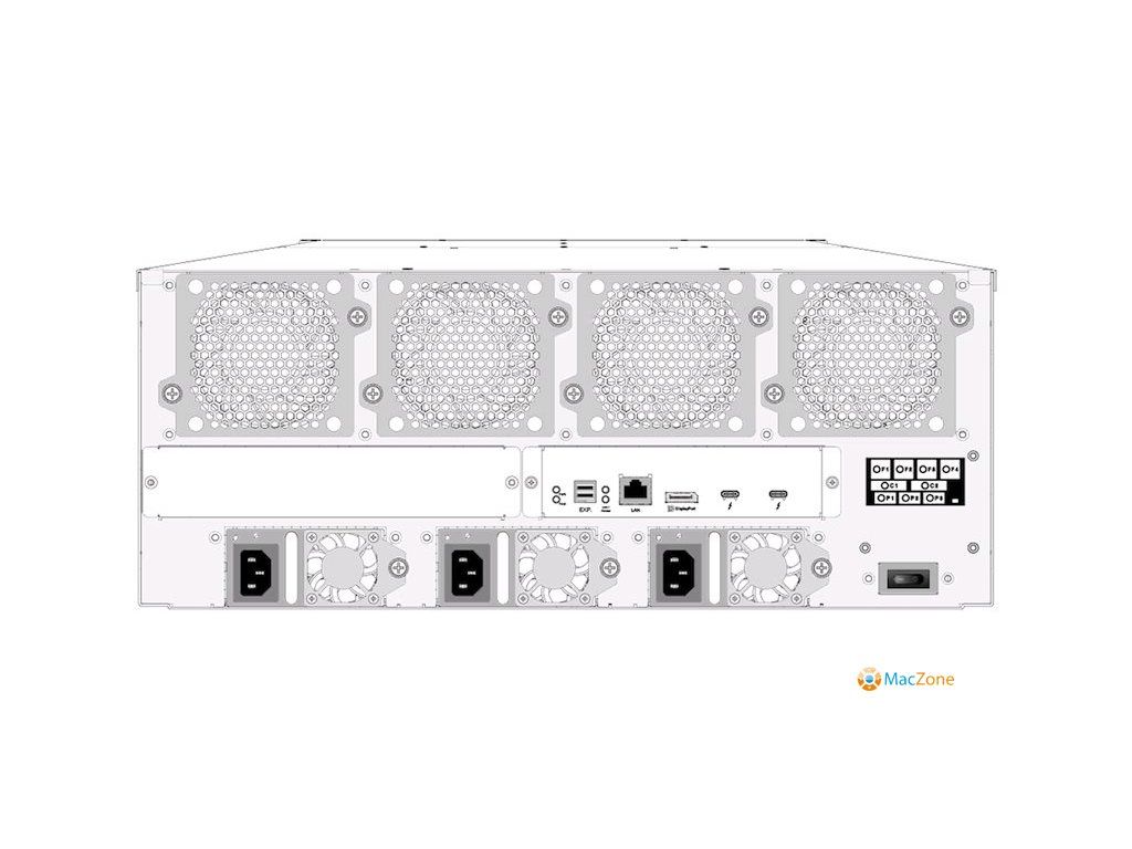 Profesionální box pro instalaci až 24 SATA / SAS disků s konektivitou Thunderbolt 3 ( zpětně kompatibilní s TB 2) , vhodný pro zpracování 4K videa, datové toky přes 2400MB/s . Široké spektrum RAID režiímů , dva ventilátory, diagnostický displej, monitoring stavu pole přes Ethernet atd .* Dvoujádrový RAID CPU 1200MHz