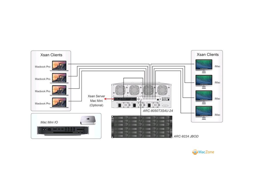 High performance 40Gbps Thunderbolt 3 interface Support simultaneous 4K in/output workflow 24-bays SAN storage for 9 users 4GB ECC SDRAM memory Hard Drive Firmware Update All At Once SED-based encryption Advanced configuration for video optimized performance settings Delivers enterprise-class data protection and security Configuration by the Thunderbolt/LAN port/LCD Support FBM/BBM option for cache protection 9 x Thunderbolt 3 konektivita až pro 9 XSAN uživatelů ! Na přání zákazníka box nakonfigurujeme, včetně dodání disků , inicializace pole, popřípadě náhradních hot-swap šuplíků . Napište si o kalkulaci !Kompatibilita s Thunderbolt 2 pomocí Thunderbolt redukce