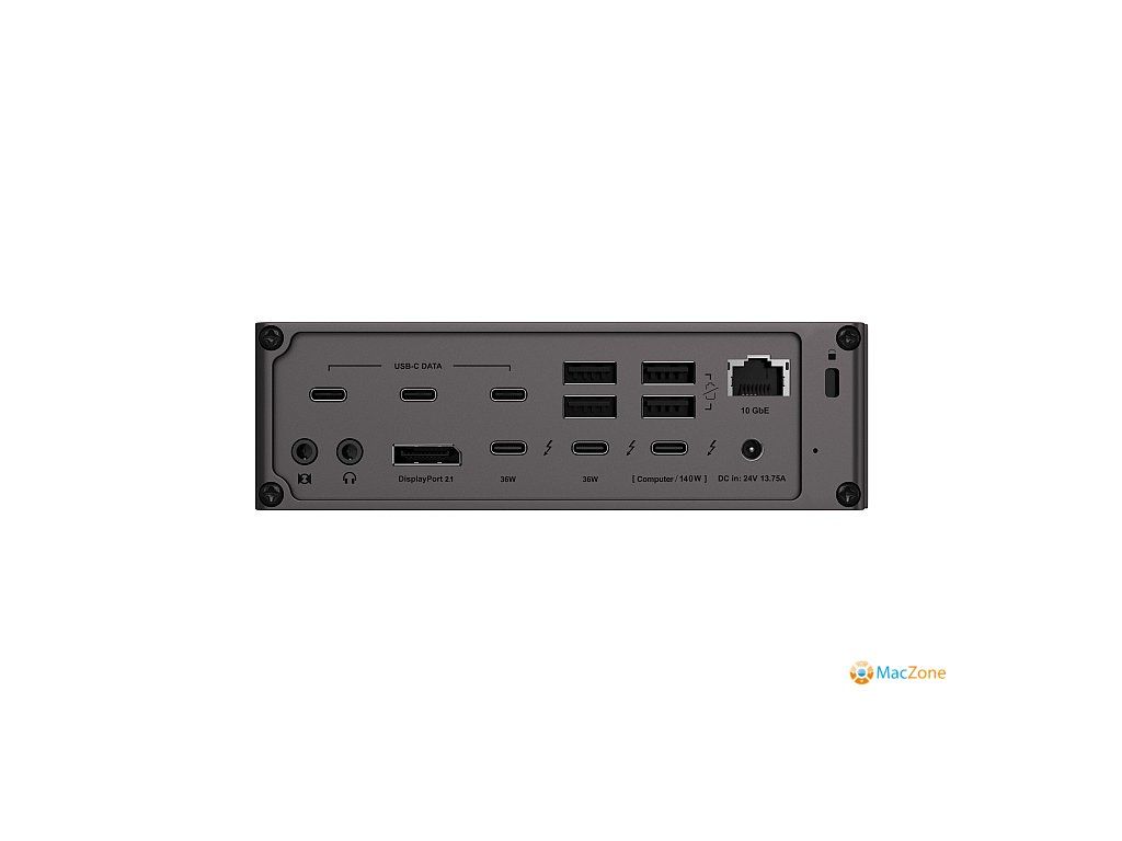Vestavěný port 10 Gigabit Ethernet2 je výkonným doplňkem již tak výkonného zařízení. 10GbE je 10× rychlejší než tradiční 1GbE, který se nachází v naprosté většině dokovacích stanic na trhu. Uživatelé se sítěmi 10GbE budou moci rozšířit své pracovní postupy na svých počítačích Mac a PC vybavených rozhraním Thunderbolt. Port 10GbE je samozřejmě zpětně kompatibilní s 1GbE, 2,5GbE a 5GbE.