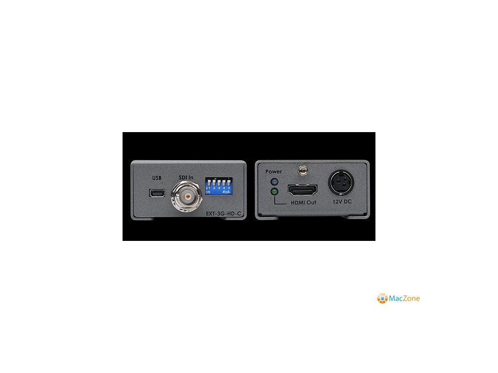 Převodník Gefen z 3G-SDI na HDMI The Gefen EXT-3G-HD-C converts audio and video from SDI to HDMI format, at resolutions up to 1080p Full HD, 3G-SDI, single link HD-SDI, and audio formats up to 8 channels of LPCM are supported. This product is fully compatible with the Gefen Syner-G™ software suite. This product can be installed on camera gear via an industry-standard 1/4-20 attachment thread located on the bottom of the unit. It can also be surface-mounted using the included surface mounting bracket. The EXT-3G-HD-C is light and compact enough to be held in place using Velcro® if your particular installation does not allow for the two preferred methods of installation described above. Set the DIP switches as necessary. Connect an SDI cable between the input of the EXT-3G-HD-C and an SDI source. Connect the HDMI output of the Gefen converter to an HDMI display or other downstream equipment using a Gefen locking HDMI cable. Connect the included 12V DC power supply to the 3GSDI to HDMI Converter's power supply jack and to an available electrical outlet. To remove the power supply plug from the unit, disengage the lock by pulling back on its plastic sleeve. The power LED indicator will glow in blue to indicate that the unit is powered on. The HDMI Out LED indicator will glow in green to indicate that an active HDMI sink is present. Use the USB Mini-B port with Gefen Syner-G™ software suite for performing firmware updates. See the user manual for details. Features : Converts SDI to HDMI Input resolutions up to 1080p60 Output resolutions up to 1080p Full HD HDMI (YCbCr 4:4:4) or DVI (RGB 4:4:4) output modes Supports 3G-SDI Levels A and B, Single-Link HD-SDI, and SD-SDI Supports up to 10 bit color on input and output Up to LPCM 7.1 audio support Field configurable via DIP switch settings Mini USB port for use with Gefen Syner-G™ for in-field firmware updates Wide power supply operating range (6V to 24V DC) Locking power supply connector 1/4-20 industry-standard camera gear attachment thread on bottom Surface-mountable using the included detachable bracket Specifications Maximum Pixel Clock: 150 MHz Maximum TMDS Clock: 225 MHz Video Input Connector: (1) SDI BNC-type, female Video Output Connector: (1) HDMI Type A 19-pin, female, locking USB Connector: (1) Mini-B Configuration Switches: (5) DIP-type HDMI Indicator: (1) LED, green Power Indicator: (1) LED, blue Power Supply Connector: (1) 3-pin, locking Power Supply: 12V DC nominal (6V to 24V DC operating range) 95% RH, non-condensing MTBF: 50000 hours Dimensions (excluding connectors, W x H x D): 2.9" x 1.2" x 2.3" (74mm x 30mm x 59mm) Net Unit Weight: 0.3 lbs. (0.15kg)Doplňkové parametry