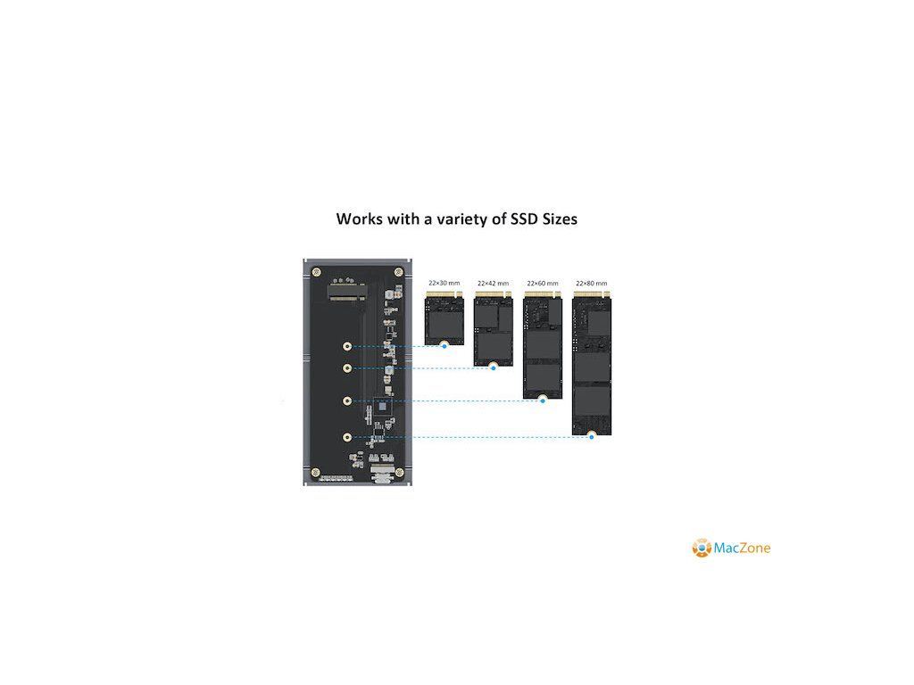 - Kompatibilní s disky SSD o rozměrech: 22 x 30 mm, 22 x 42 mm, 22 x 60 mm, 22 x 80 mm.