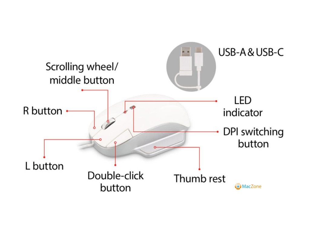 LMP Elite Pro Mouse USB-C pro Apple , drátová myš s USB-A a USB-C 2v1, stříbrná