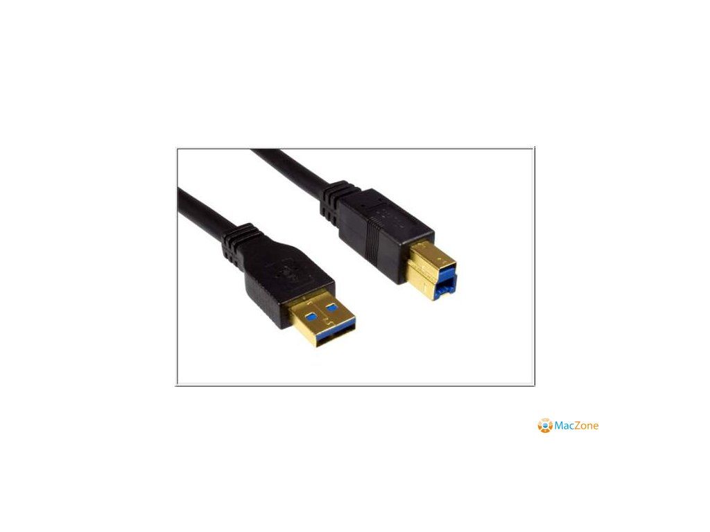 MacPower USB 3.0 kabel A/B 5m , černý, zlacené konektory , stíněný