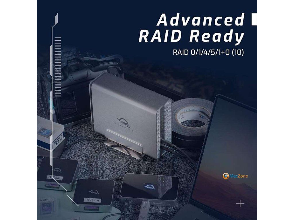 Vytvořeno pro RAID: Stačí přidat vlastní software pro správu RAID, například OWC SoftRAID; nejrychlejší a nejflexibilnější nástroj RAID 0/1/4/5/1+0 (10). Podporuje také Apple RAID a Windows Disk Manager.