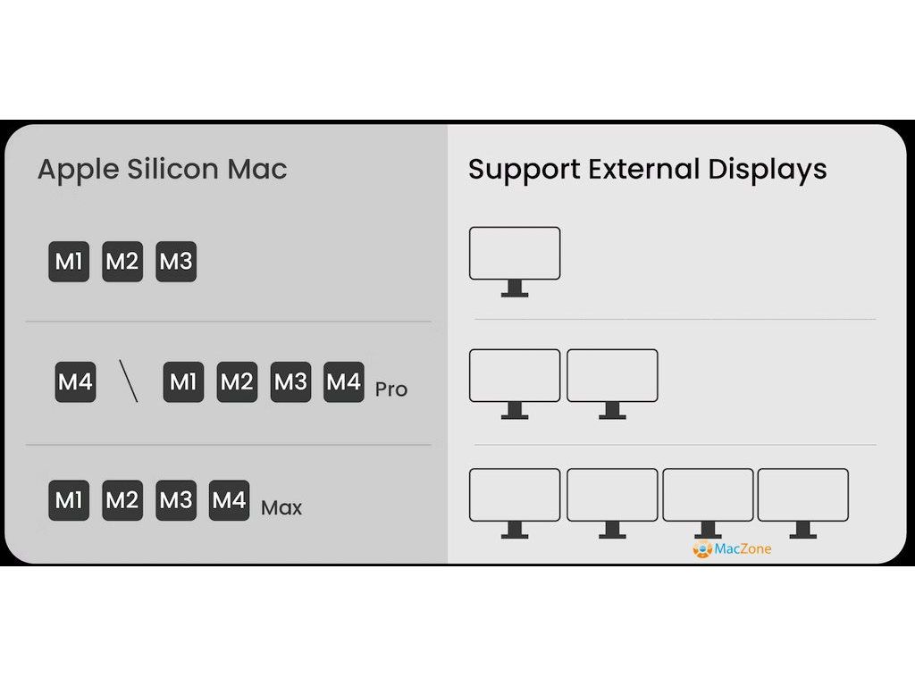K jakémukoli počítači Apple Mac M1, M2 a M3 s portem USB-C nebo Thunderbolt můžete snadno připojit dva displeje HDMI s rozlišením až 4K.