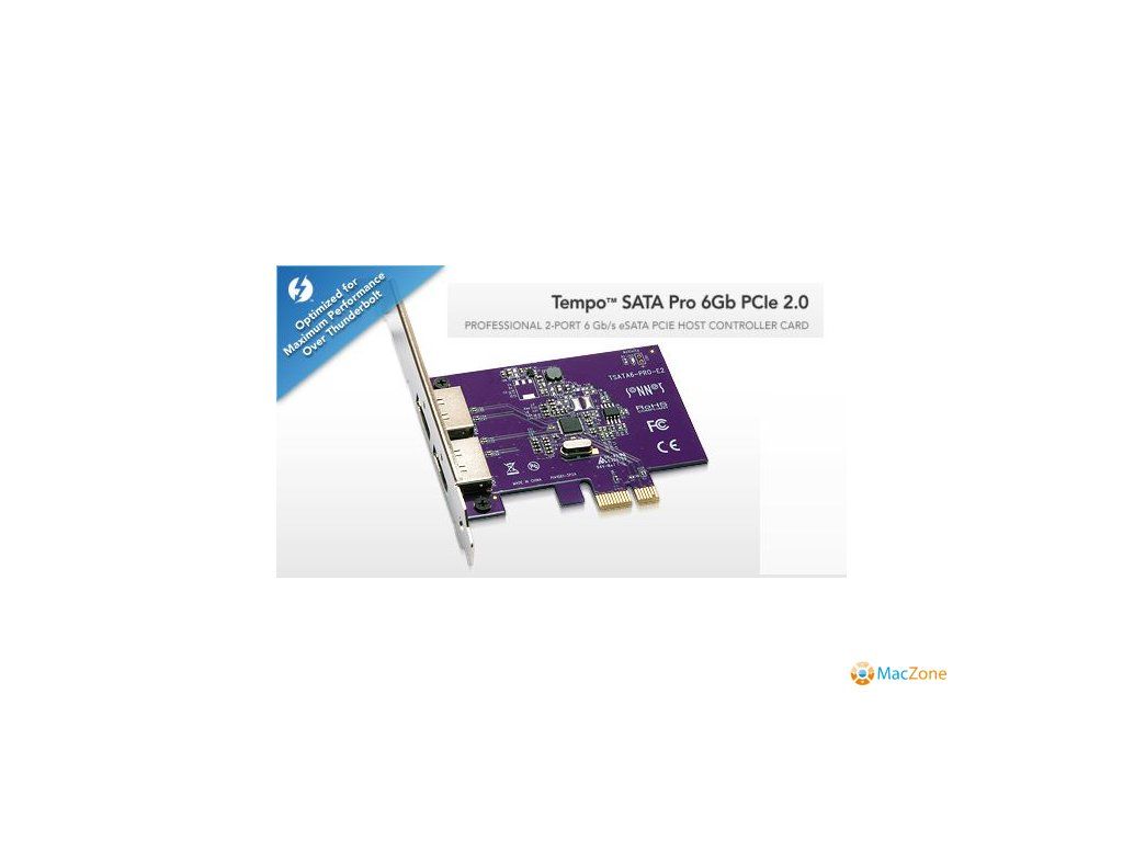 Sonnet Tempo SATA PRO 6Gb PCIe 2.0 řadič pro Mac OSX ( 2x external eSATA 3) TSATA6-PRO-E2 , kompatibilní s počítači Apple Mac Pro a PC a PCI eexpress sběrnicí revize 2,0 ( tedy od MacPro 3,1 a novější ) . 2x Externí SATA III port , rychlost až 6Gb/s , hot-swap podpora, konektory eSATA:Podporuje bootování , AHCI kompliant , ATAPI , SMART . Mac OSX 10.6 a vyšší , Lion otestován, Win Vista , Win 7 včetně bootování pro dual boot systémy . Extrémní výkon díky SATA 3 , R/W až 385 MB/s , funkční i v Thunderbolt Echo externích boxech .