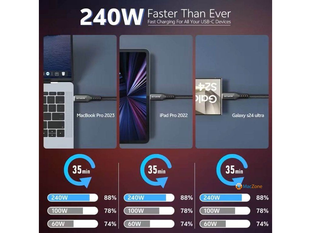 240W nabíjení a rychlost 80 Gb/s: Podporuje rychlé nabíjení a přenos dat plnou rychlostí (v závislosti na zařízení).