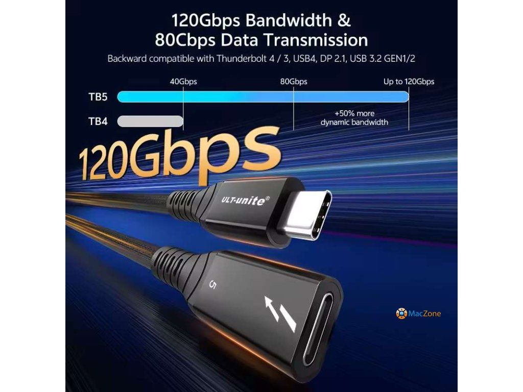 Kompatibilita s budoucností: Prodlužovací kabel thunder-bolt 5 je zpětně kompatibilní se zařízeními thunder-bolt 4/3, USB4, USB-C 3.2/3.1. Plug-and-play pro Mac, PC, iPad a další zařízení.